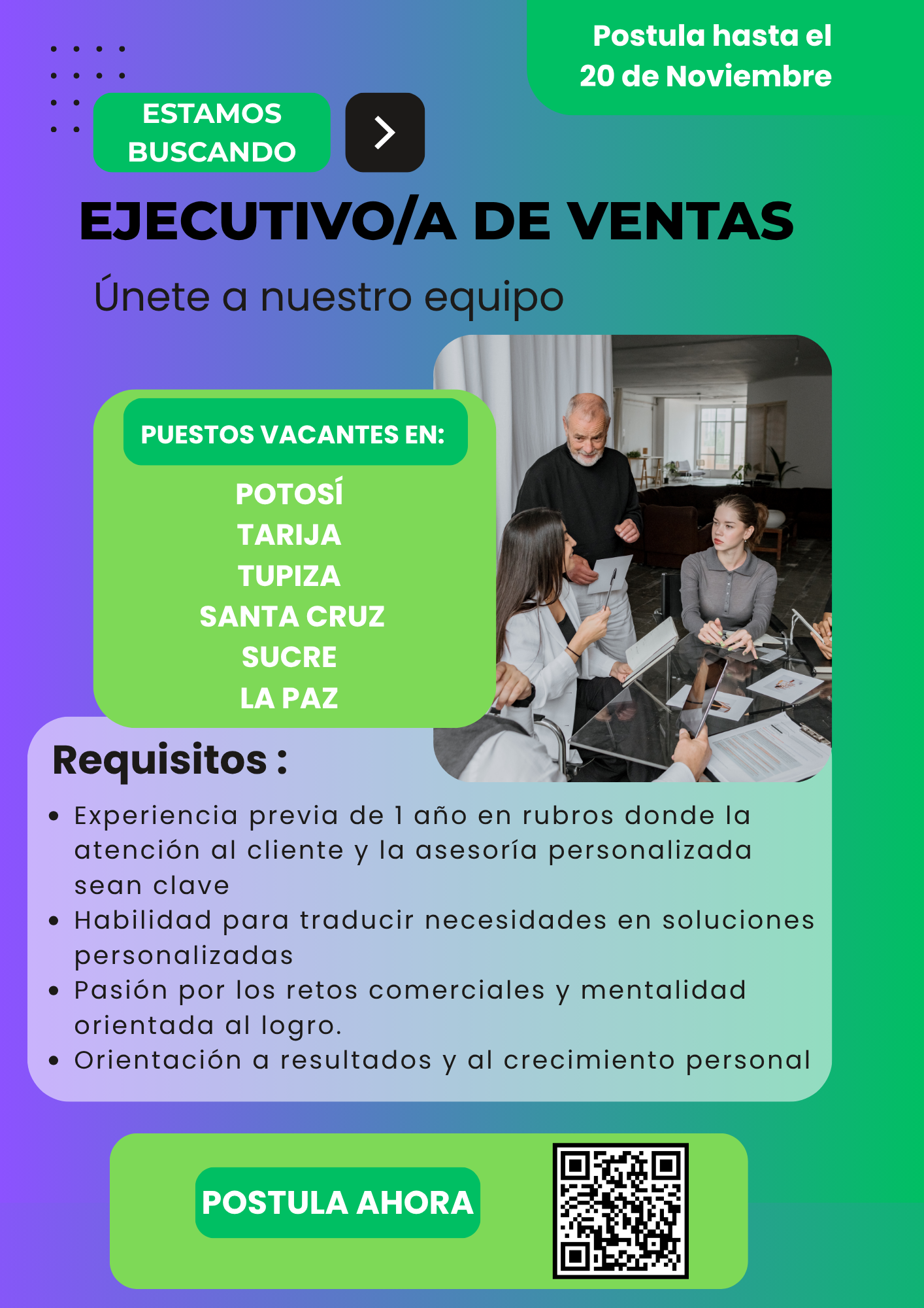 Si disfrutas del trato con las personas, te apasionan las ventas y buscas desarrollarte en una empresa sólida y en crecimiento, ¡esta oportunidad es para ti!
