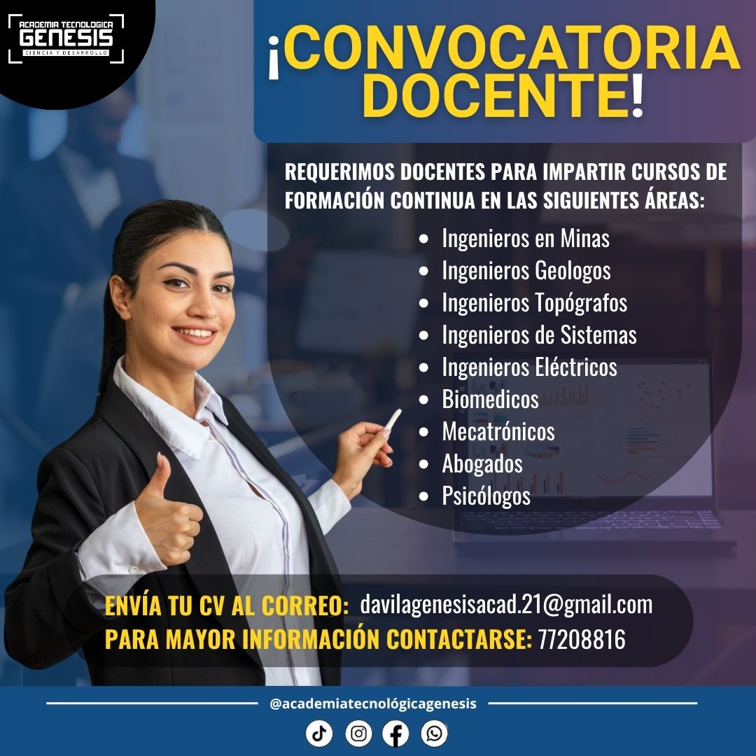 Envía tu CV hasta el 14 de septiembre al correo: davilagenesisacad.21@gmail.com