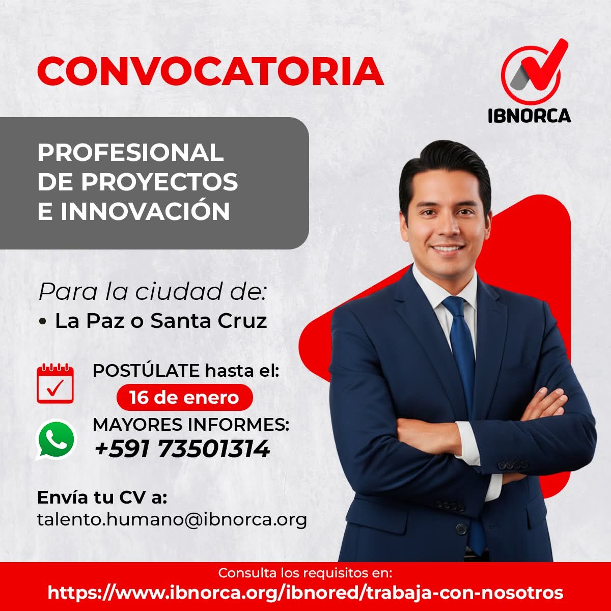 Envía tu CV a: talento.humano@ibnorca.org hasta el 16 de enero de 2026