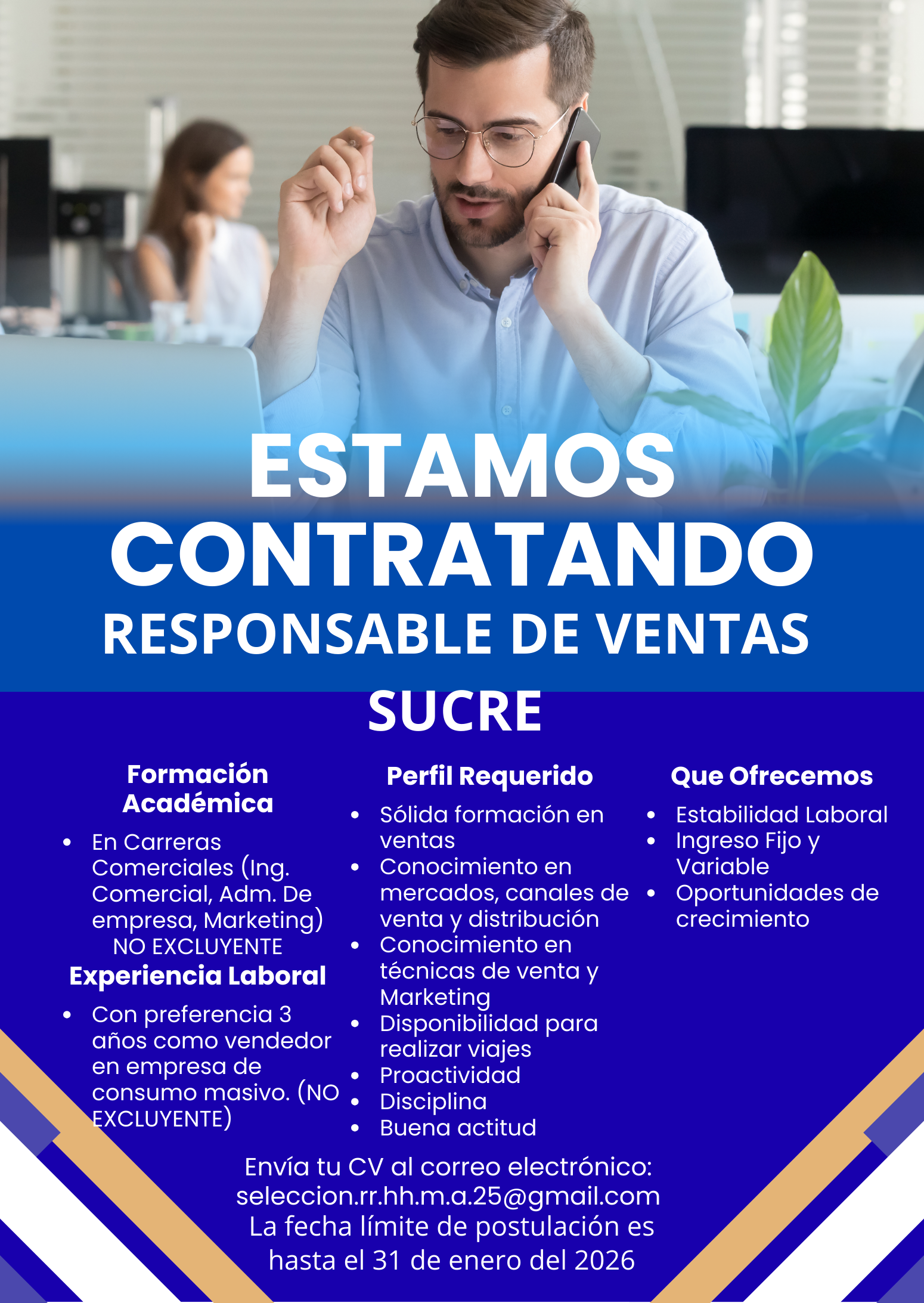 RESPONSABLE DE VENTAS (CIUDAD DE SUCRE)