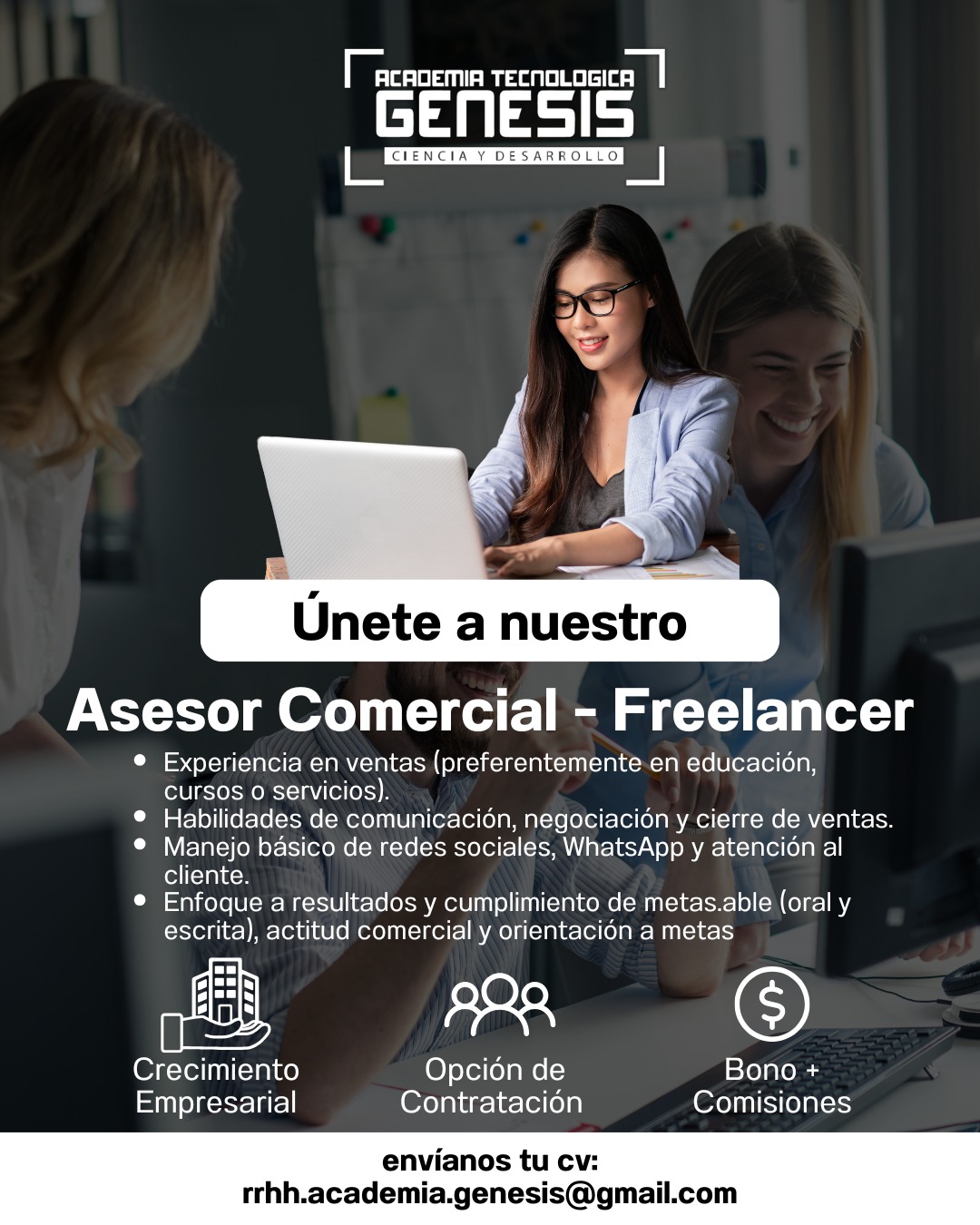 Envía tu Cv al CORREO: rrhh.academia.genesis@gmail.com
