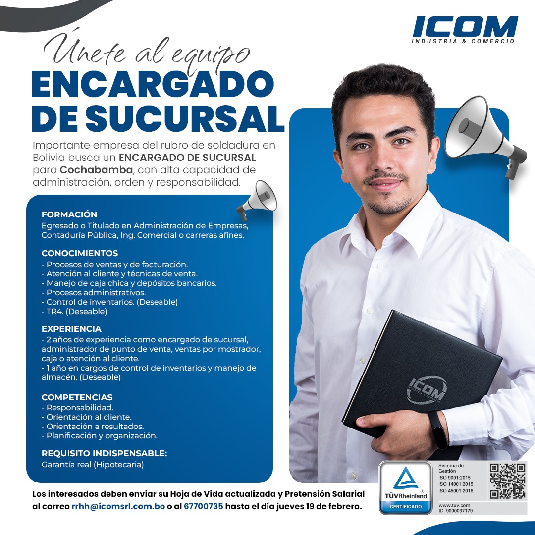 ENCARGADO DE SUCURSAL COCHABAMBA