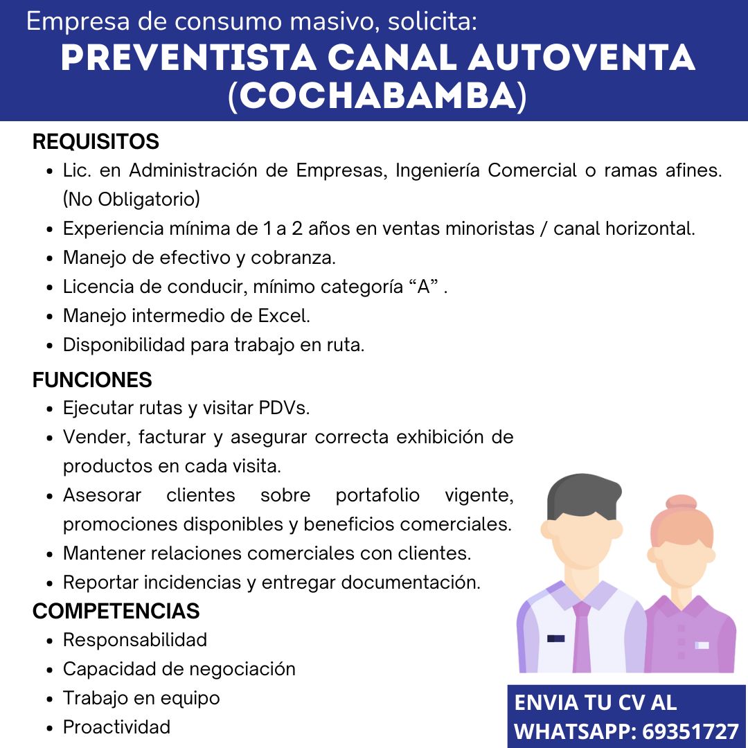 Cochabamba · Comercial y Ventas · Jornada completa VIGENTE