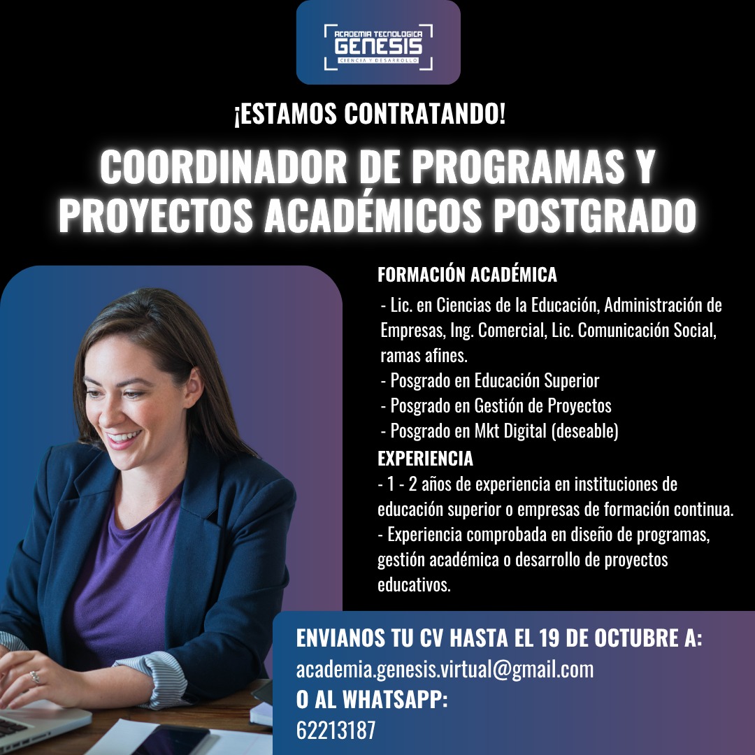 COORDINADOR/A DE PROGRAMAS Y PROYECTOS ACADÉMICOS – POSTGRADO