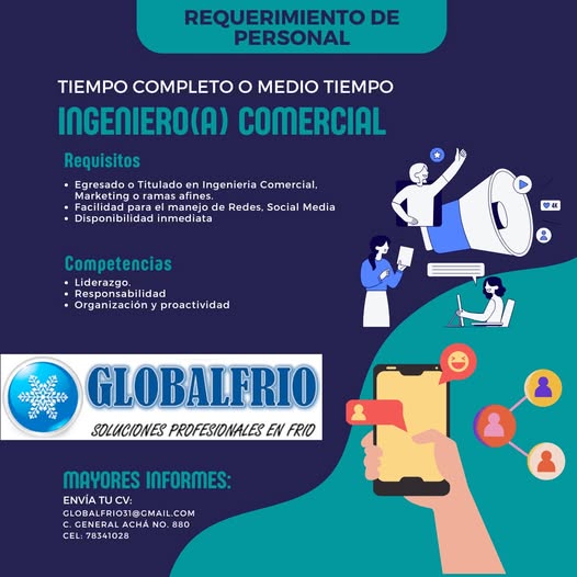 Descripción del empleo ATENCIÓN COCHABAMBA!OFERTA LABORAL!Más información o envía tu CV al: 78341028 Fuente https://www.facebook.com/globalfriobo/posts/pfbid0sh2r9K44nzvFkXJpgSvP8q7V2Gv1D… Reportar este empleo
