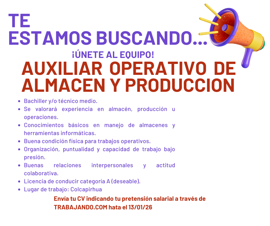 - Valorable, experiencia en almacén u operaciones logísticas.