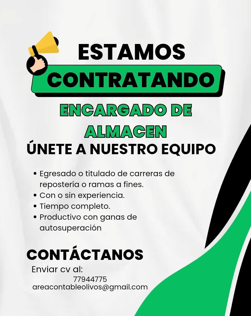 📩 Interesados enviar CV actualizado a: areacontableolivos@gmail.com