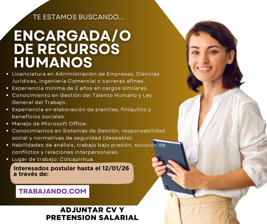- Conocimiento en Gestión del Talento Humano y Ley General del Trabajo.