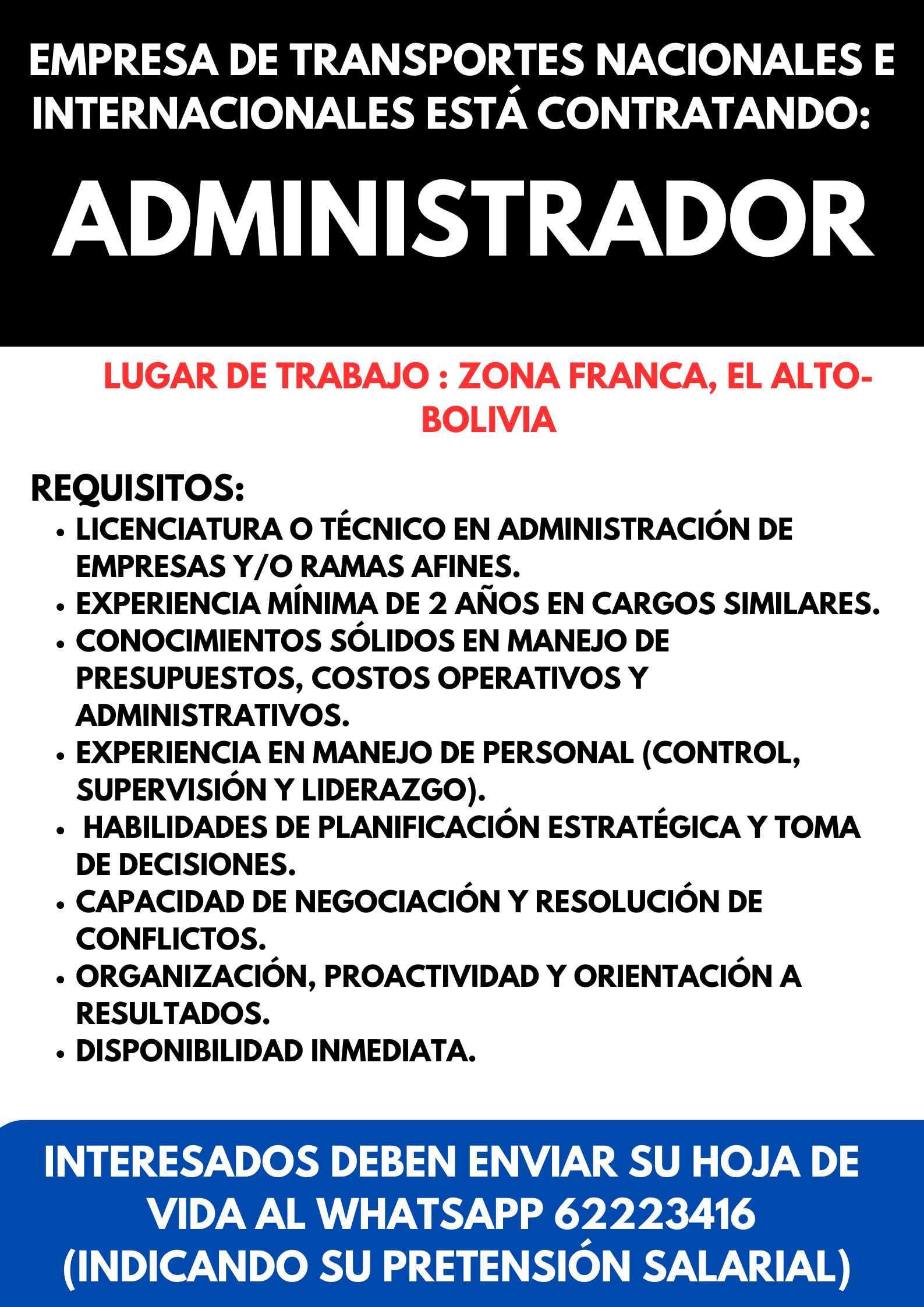 Interesados deben enviar su hoja de vida al WhatsApp 62223416 (INDICANDO su pretensión salarial)