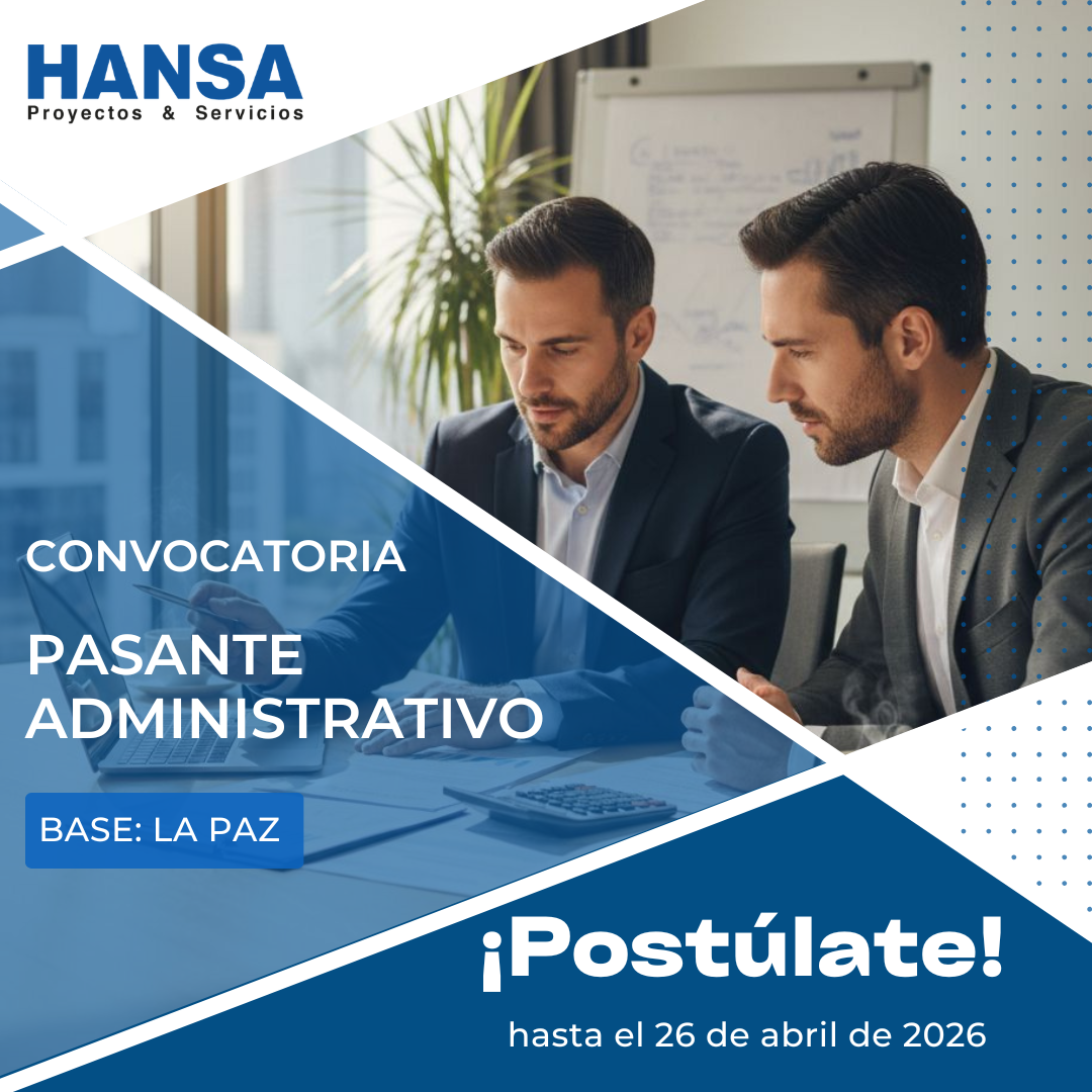 En la División Proyectos & Servicios de HANSA LTDA. buscamos incorporar a una persona con alto interés en la gestión administrativa, control y seguimiento de información, que quiera aprender en un entorno dinámico y retador.