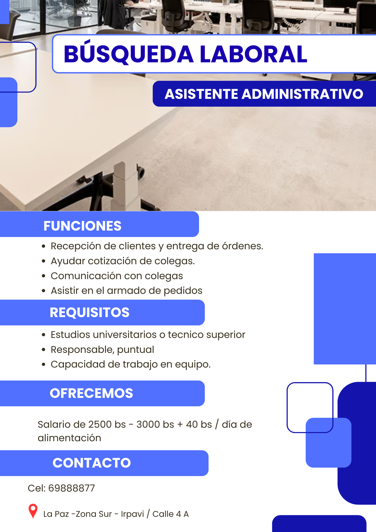 Puedes postular a este empleo con tu cuenta en Trabajando.com.bo ¡Postularme Ahora! Descripción del empleo Reportar este empleo