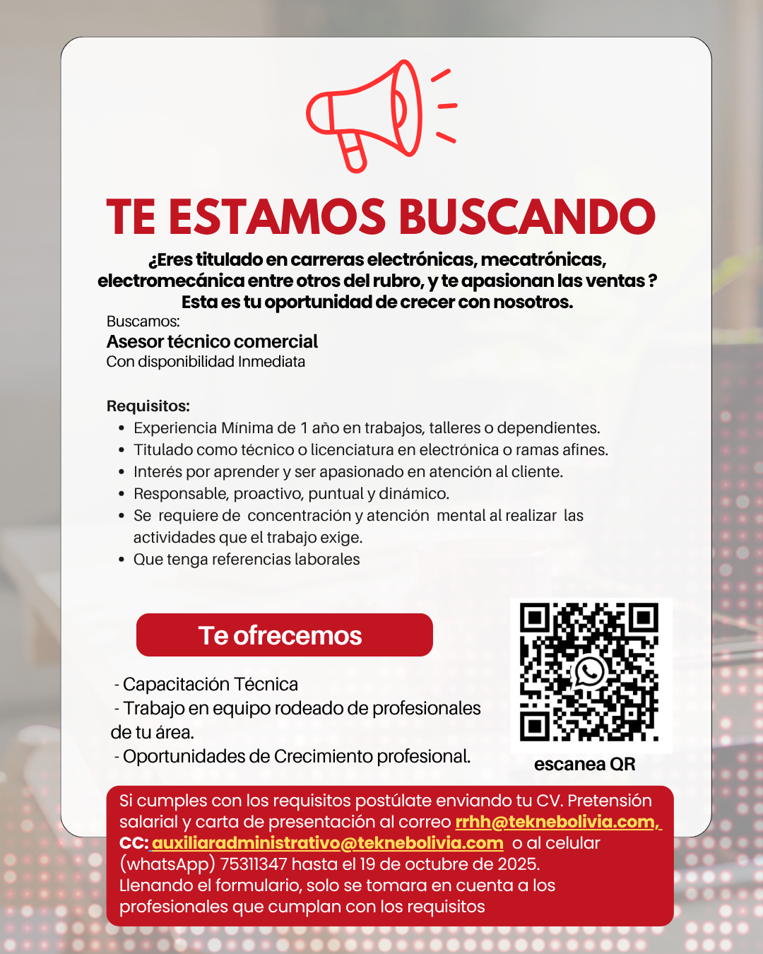 Puedes postular a este empleo con tu cuenta en Trabajando.com.bo