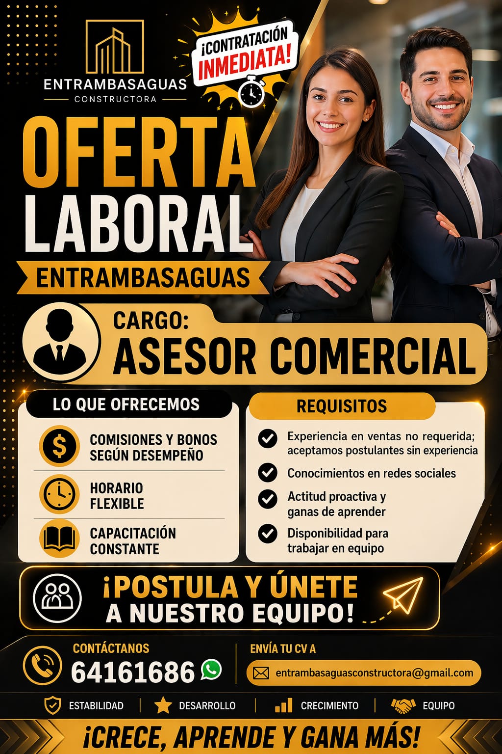 Envíanos tu CV al correo: entrambasaguasconstructora@ gmail.com