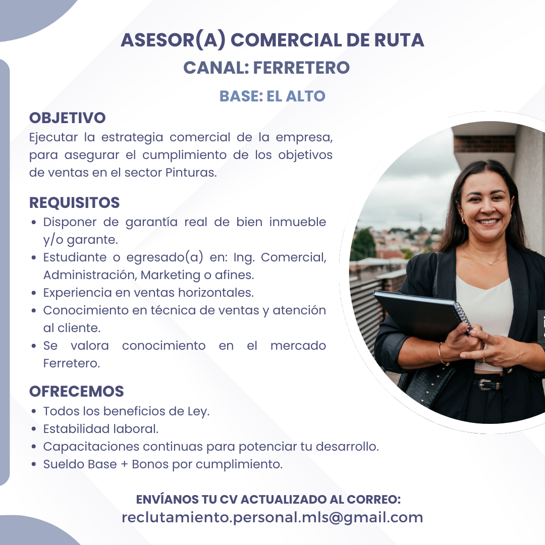 - Se valora conocimiento de Pinturas y/o conocimiento en el mercado Ferretero.