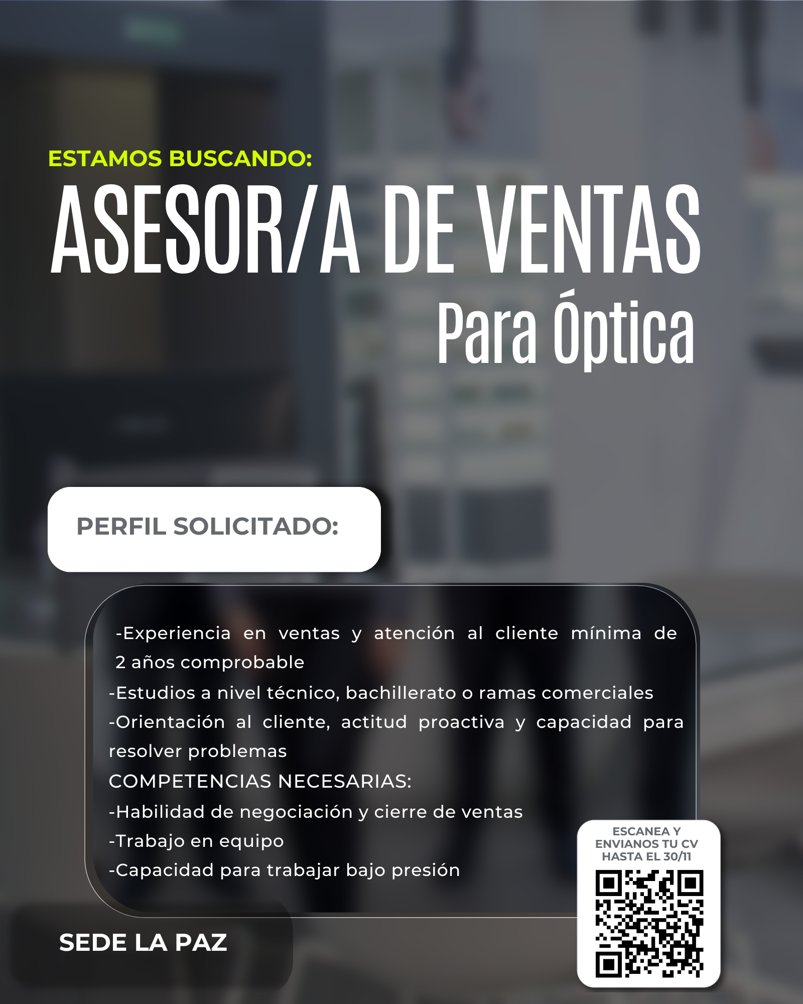 Si te gusta trabajar con personas, tienes facilidad para comunicarte, disfrutas alcanzar metas y quieres desarrollarte en una empresa líder del sector óptico, ¡Queremos conocerte!