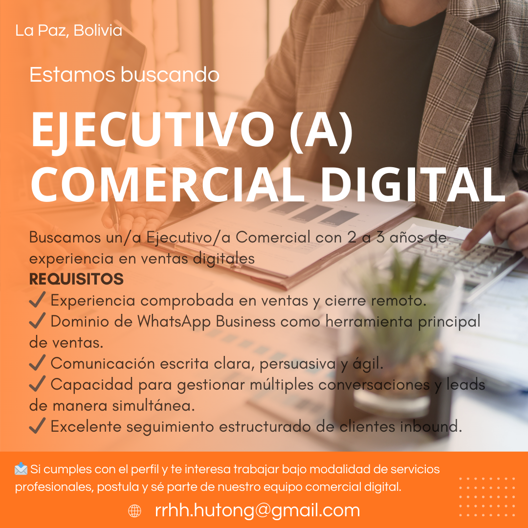 Si tienes habilidades en cierre de ventas, manejo de leads inbound y comunicación persuasiva, ¡queremos conocerte!