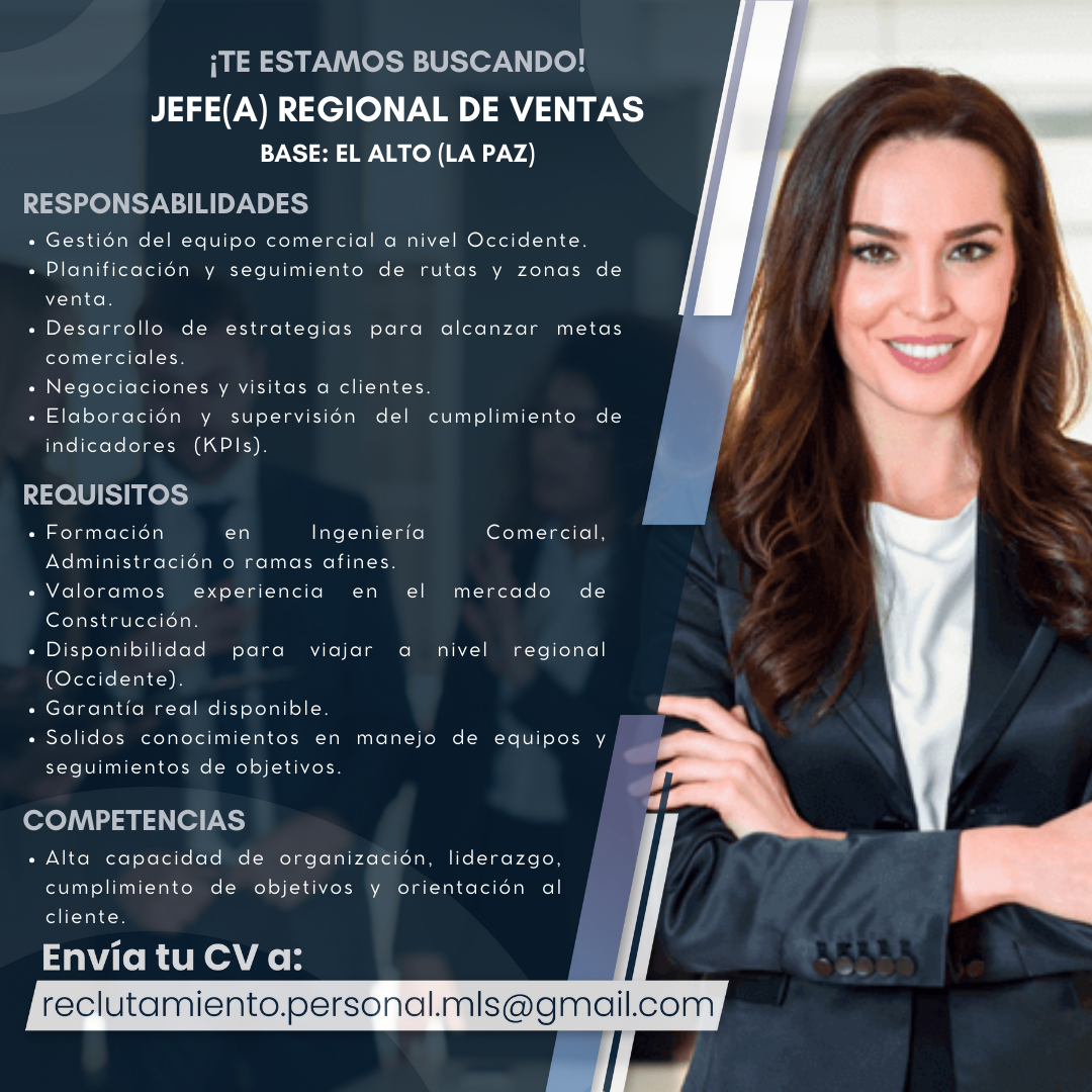 - Planificar, dirigir y controlar las actividades del equipo comercial a nivel Occidente.