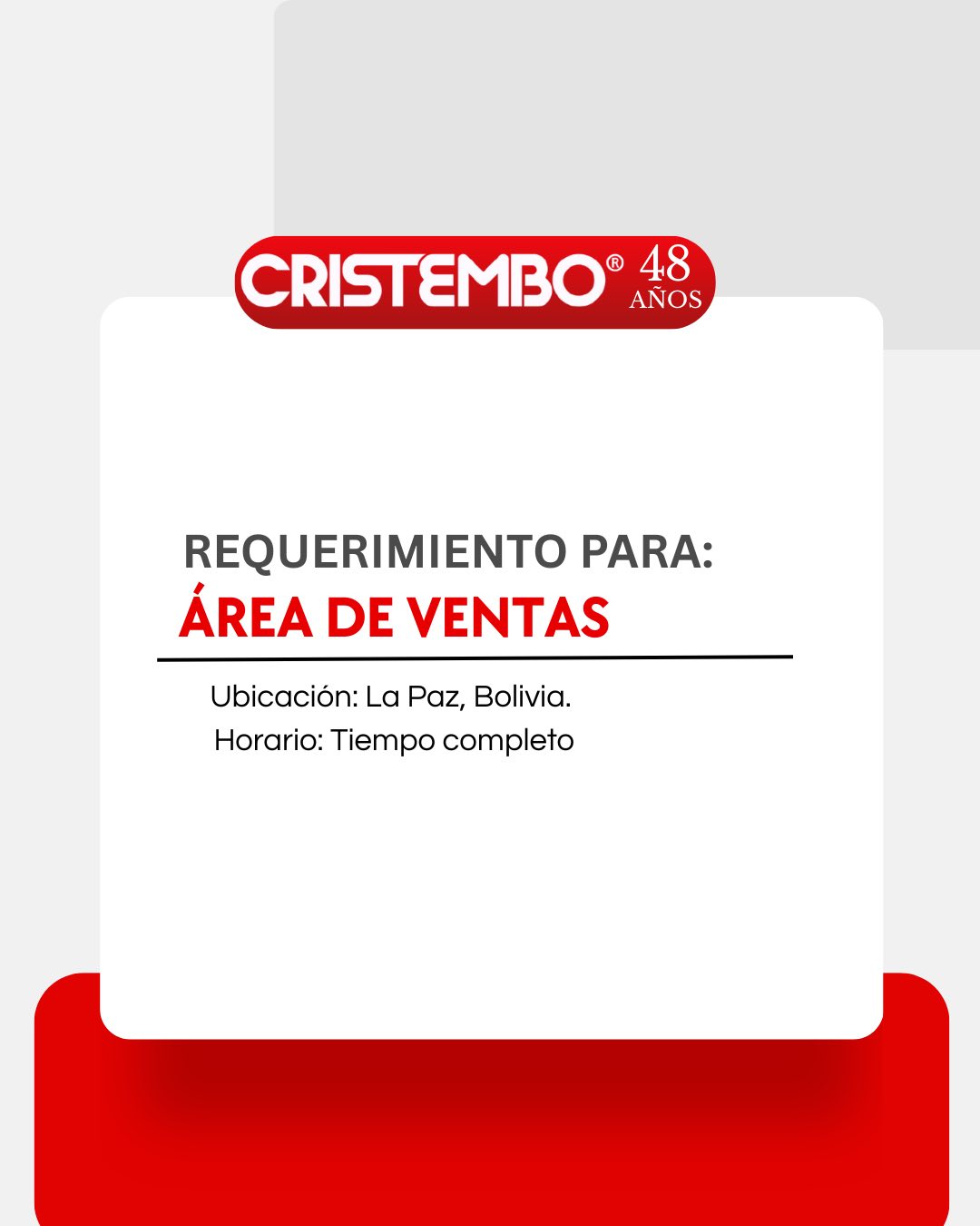 En Cristembo, empresa dedicada a brindar soluciones innovadoras y de calidad, estamos en la búsqueda de nuevos talentos para unirse a nuestro equipo comercial.