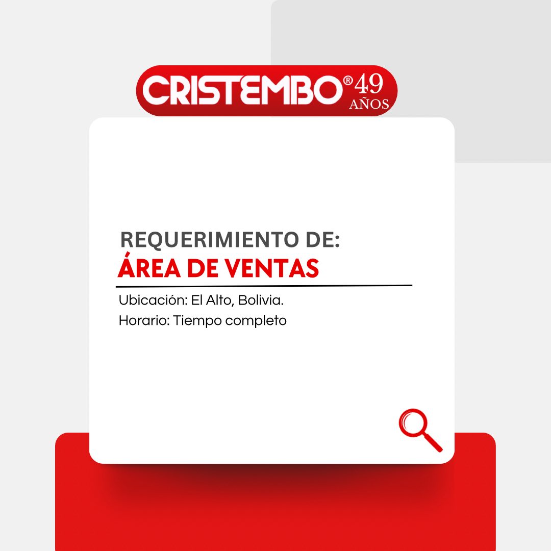 En Cristembo, empresa dedicada a brindar soluciones innovadoras y de calidad, estamos en la búsqueda de nuevos talentos para unirse a nuestro equipo comercial.