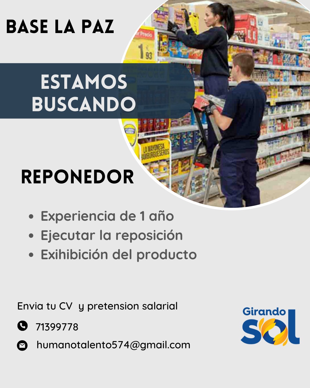 ✔ 1 año de experiencia en reposición