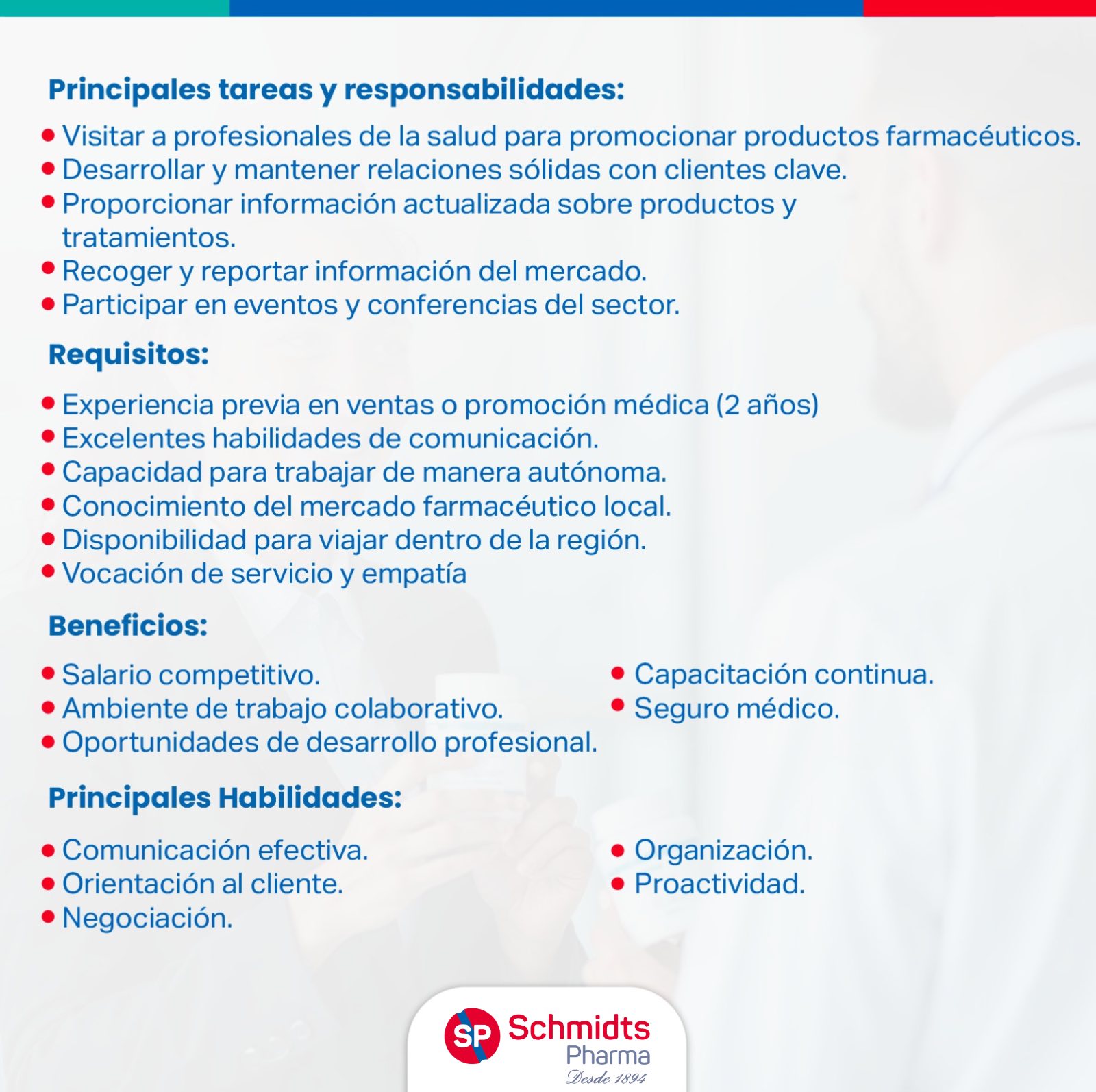 Buscamos incorporar a nuestro equipo de Visita Médica en La Paz a profesionales con experiencia, vocación de servicio y compromiso con la salud.