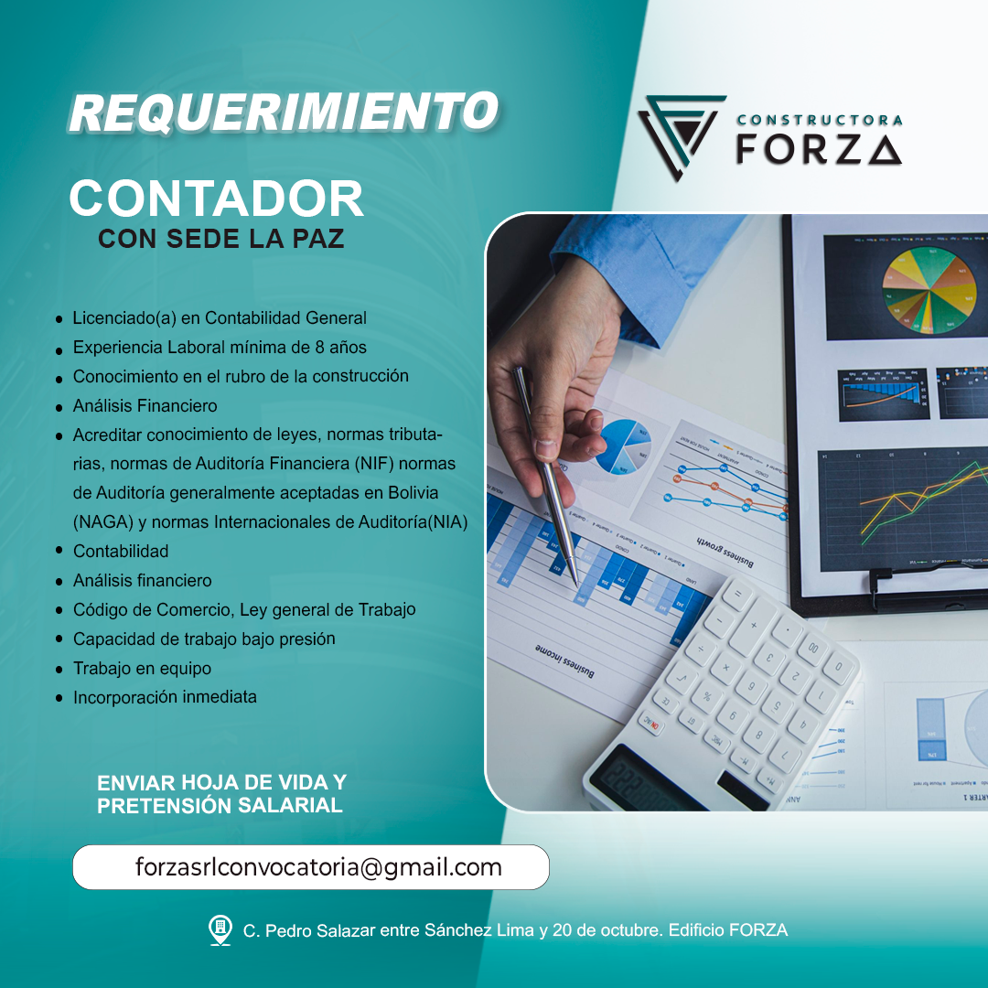 - Conocimiento en el rubro de la construcción Análisis Financiero Acreditar conocimiento de leyes, normas tributarias, normas de Auditoría Financiera (NIF) normas de Auditoría generalmente aceptadas en Bolivia (NAGA) y normas Internacionales de Auditoría (NIA)