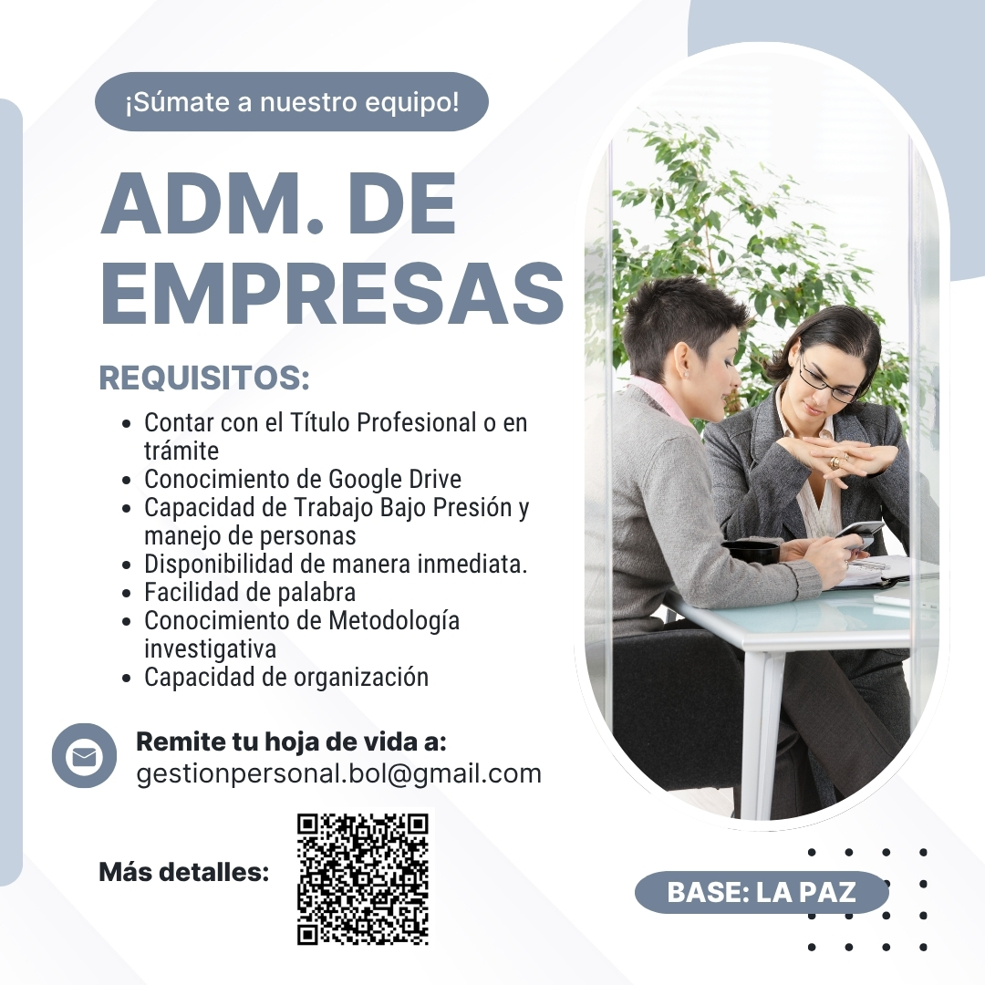 Estamos en busca de un/a Administrador/a de Empresas para integrarse a nuestro equipo en La Paz.