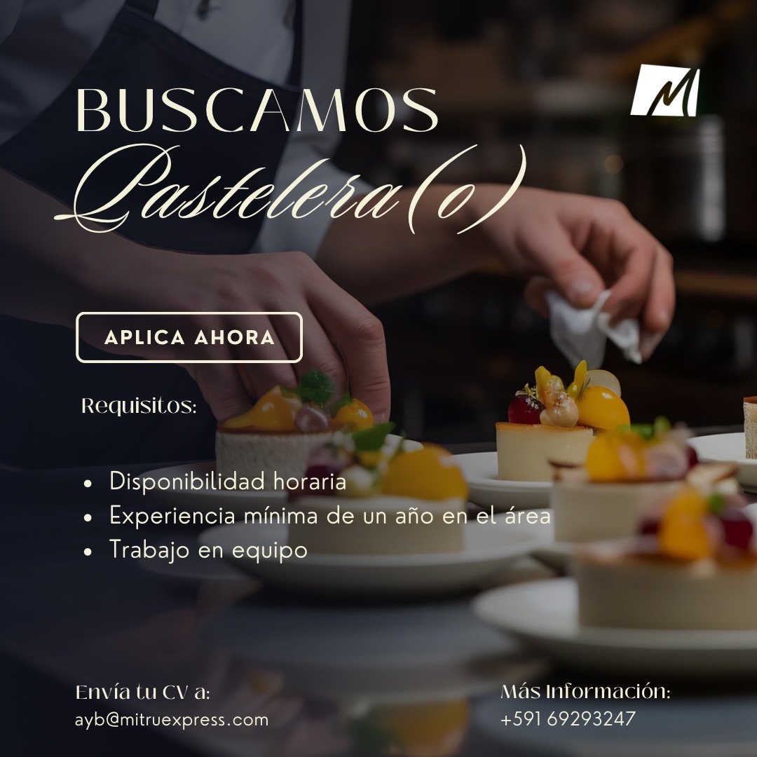 ¿Te gusta la pastelería y tienes experiencia trabajando en este rubro? Estamos recibiendo postulaciones para formar parte de nuestro equipo.