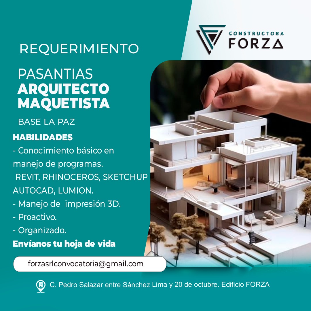 En FORZA CONSTRUCTORA, buscamos un Arquitecto / Maquetista con talento, compromiso y visión.