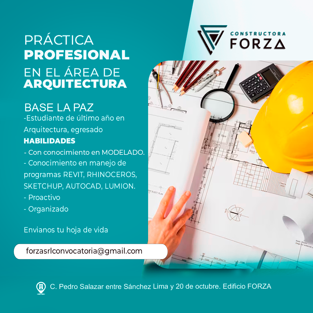 En FORZA CONSTRUCTORA, buscamos un Arquitecto / Modelador con talento, compromiso y visión.