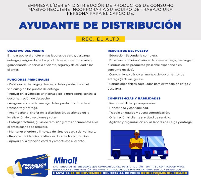 Envía tu CV a: rrhhlpz@minoil.com.bo