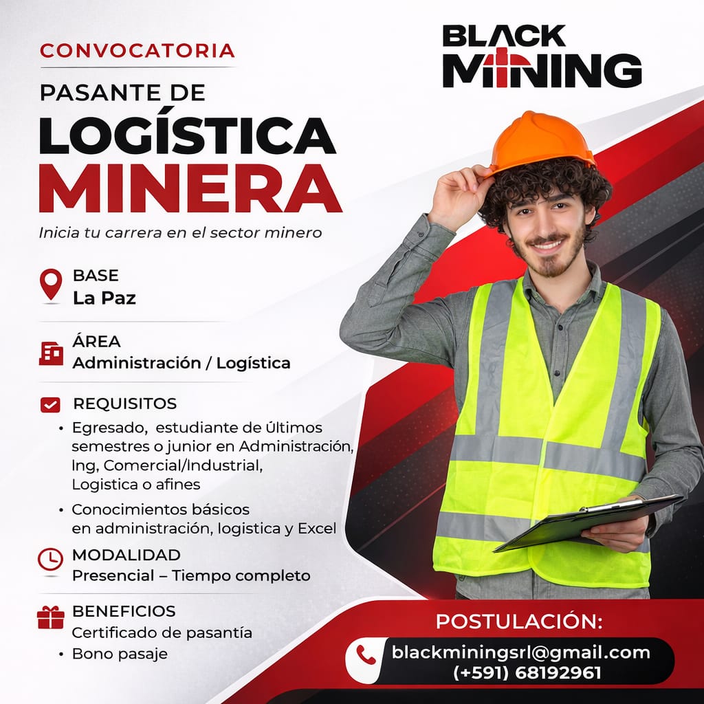 Estamos buscando un Pasante en Logística Minera para formar parte de nuestro equipo en La Paz.