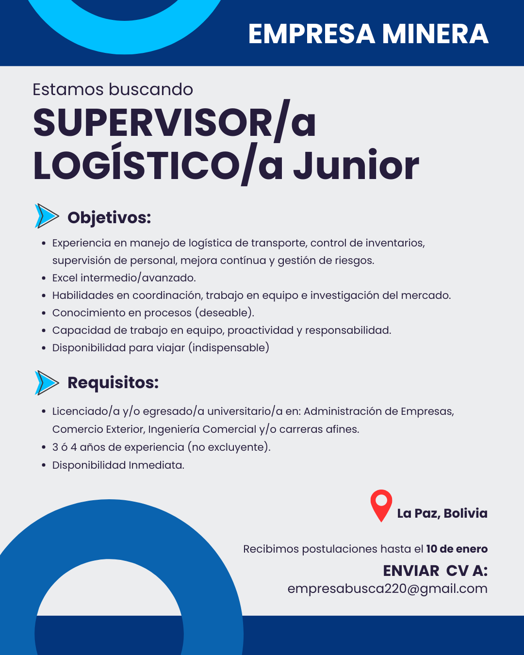 La Paz · Logística y Comercio exterior · Jornada completa VIGENTE