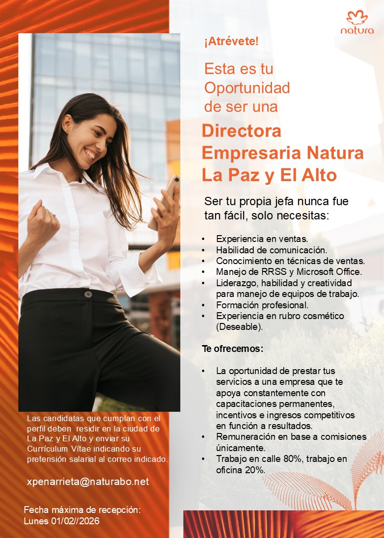 ✨ Buscamos Directoras Empresarias Natura, con experiencia en ventas, habilidades de comunicación y liderazgo, y ganas de desarrollarse profesionalmente.