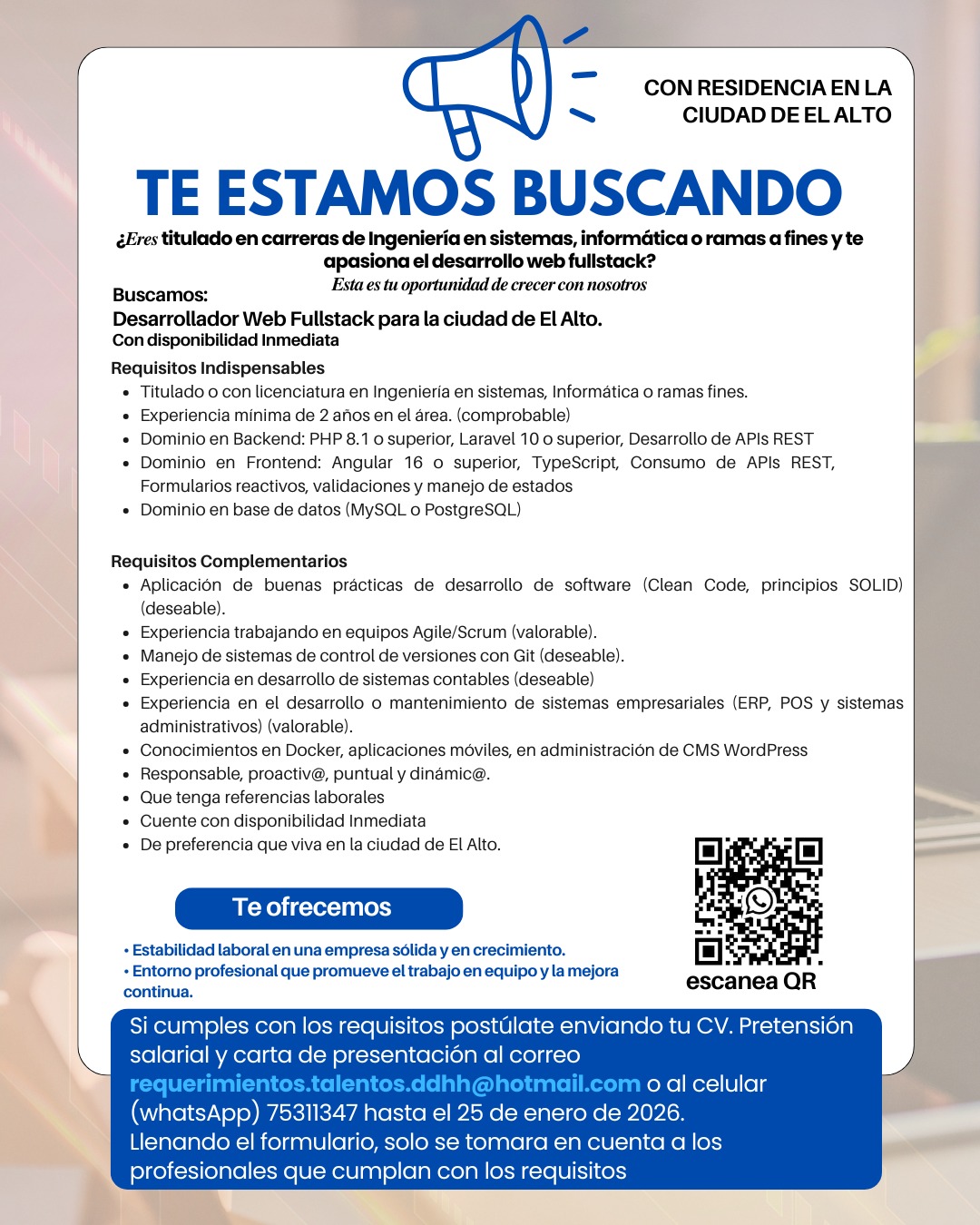Publicado: 15 Ene 2026 Vence: 25 Ene 2026