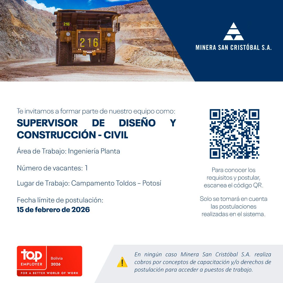 En ningún caso Minera San Cristóbal S.A. realiza cobros por conceptos de capacitación y/o derechos de postulación para acceder a puestos de trabajo.