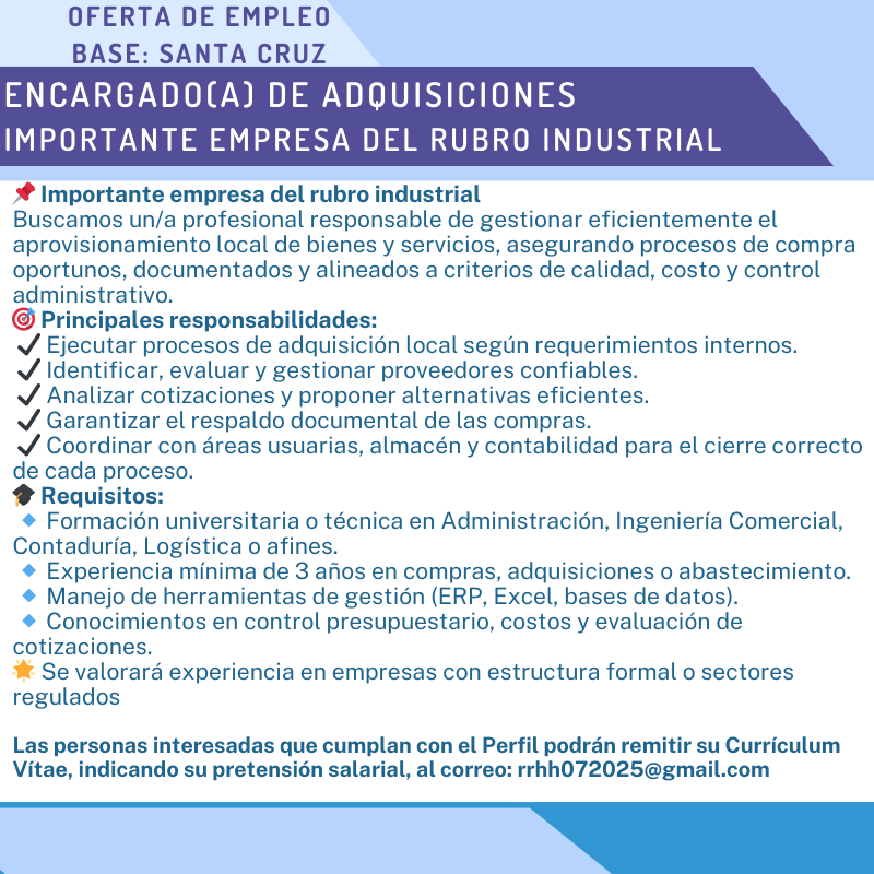 Santa Cruz · Administración y Oficina · Jornada completa VIGENTE