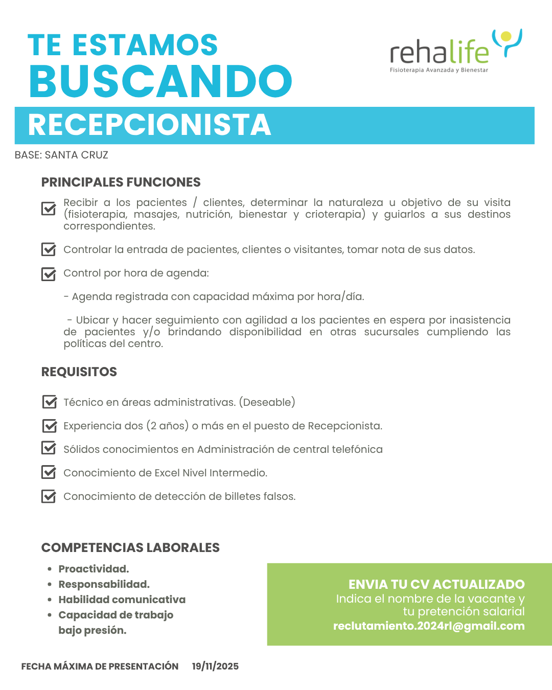 Santa Cruz · Atención al Cliente · Jornada completa VIGENTE