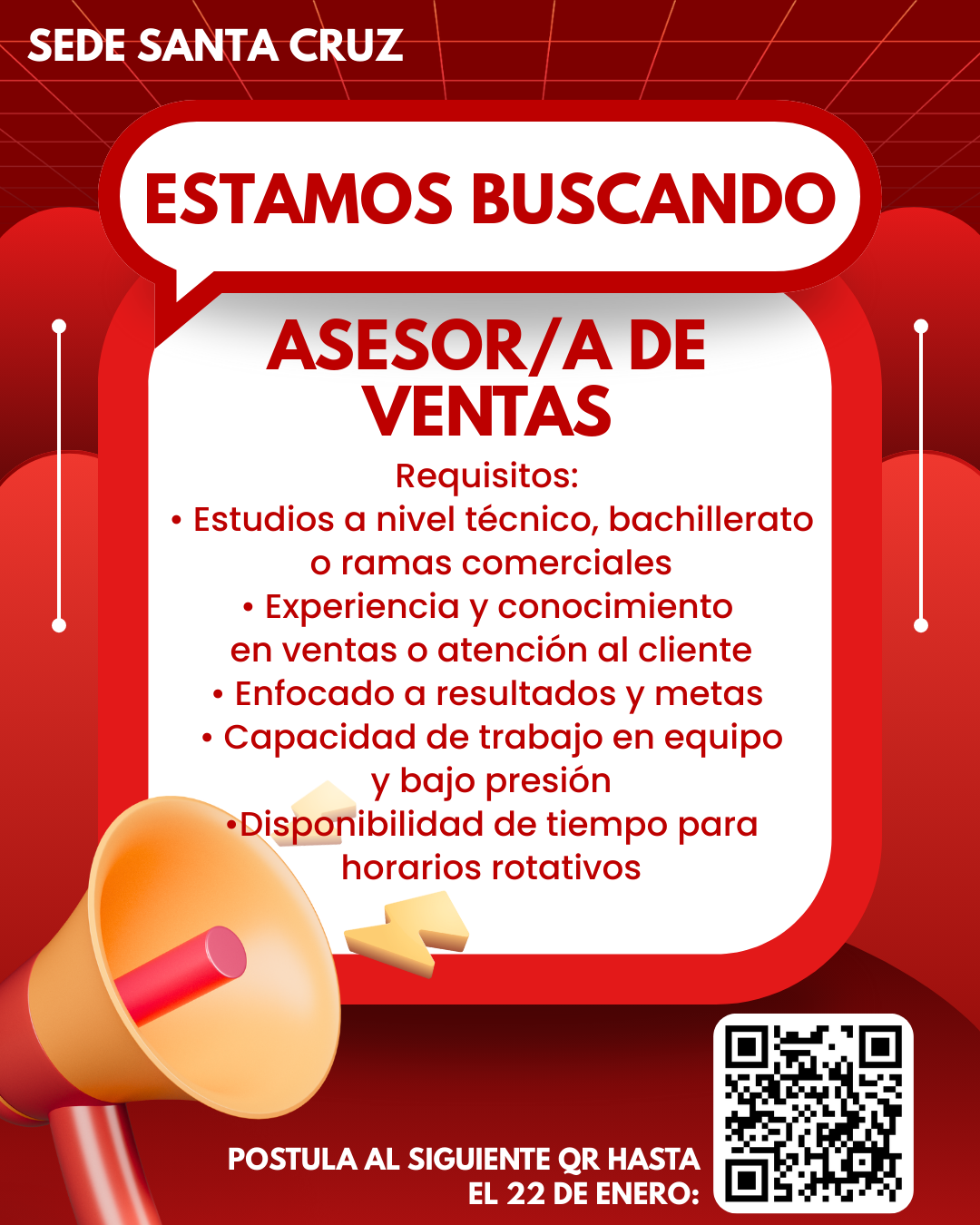 Postula al siguiente formulario : https://forms.gle/hujqQyeqjdDTRm4x9 o puedes escanear el código QR de la imagen.