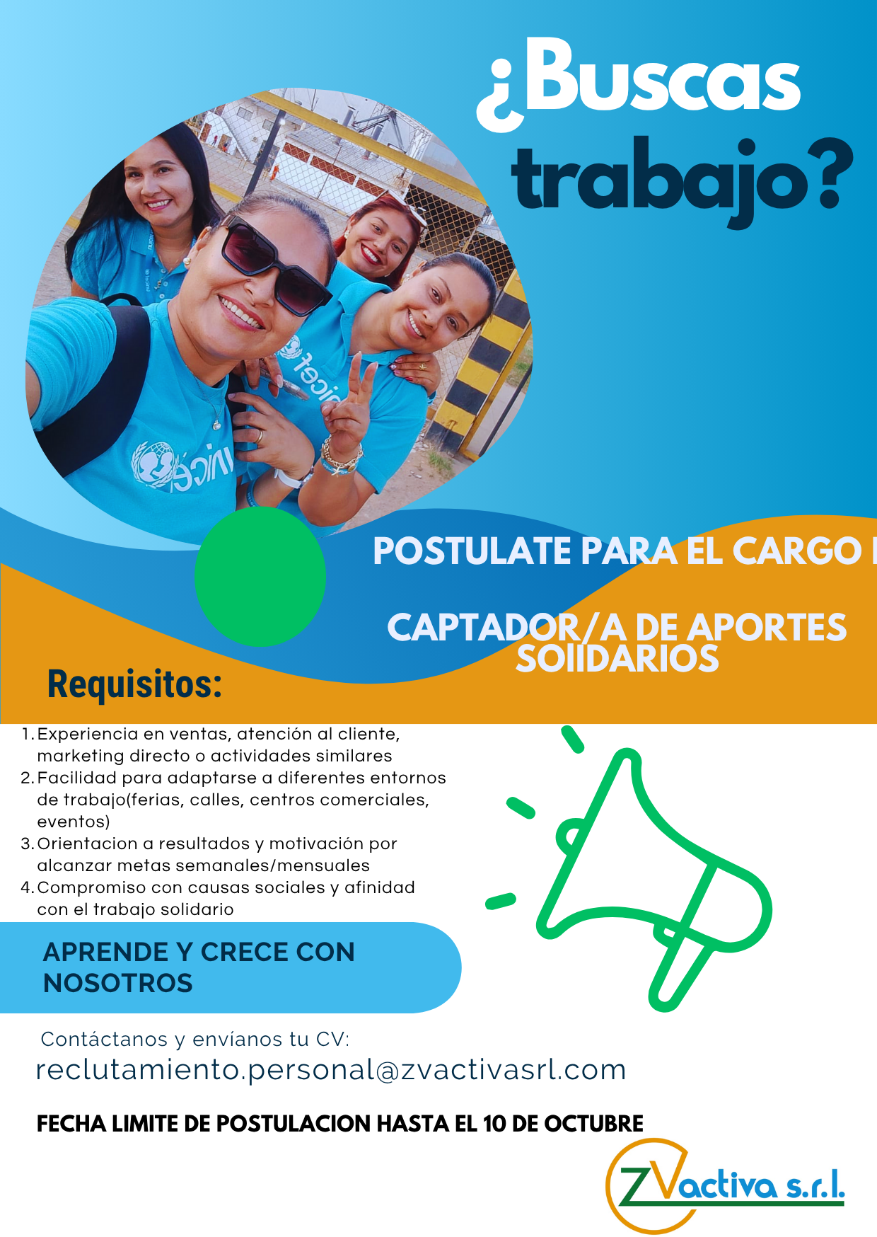 ¿Quieres un trabajo donde cada día cuenta? Únete como captador de aportes solidarios y sé parte de un equipo que transforma vidas. 🙌❤️