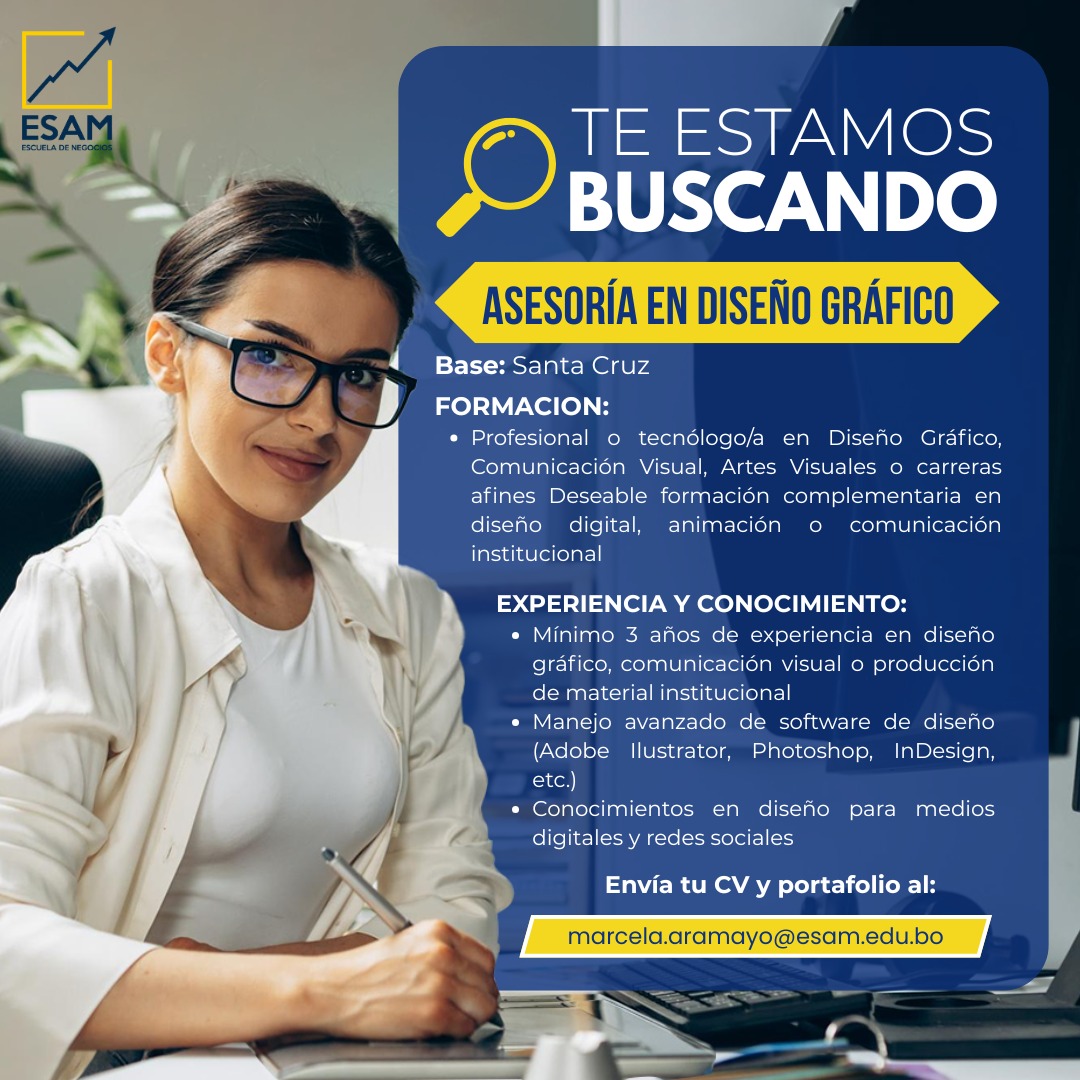Envía tu C.V. al correo marcela.aramayo@esam.edu.bo