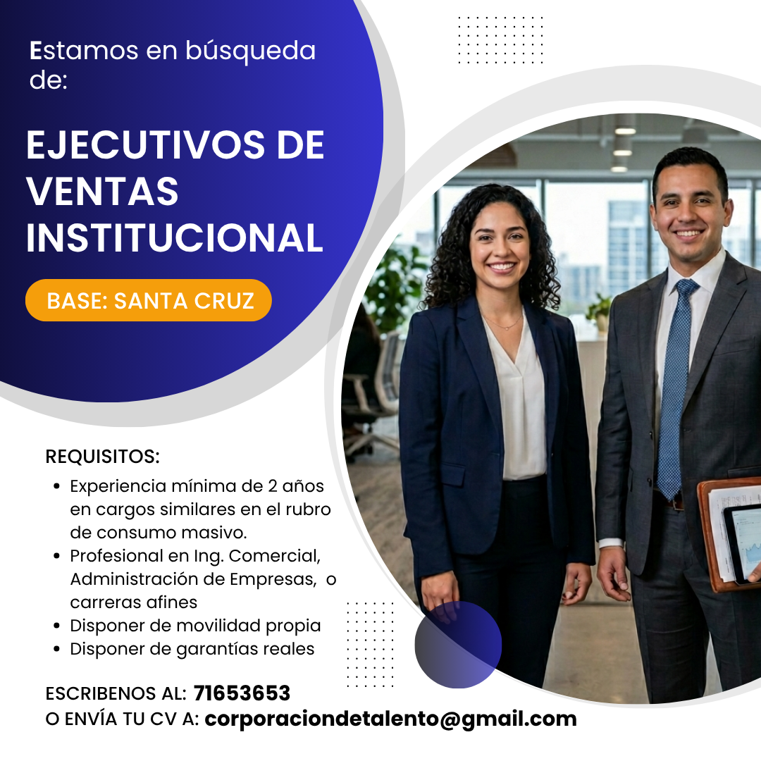 - Administrar y desarrollar la cartera de clientes institucionales, fortaleciendo relaciones comerciales a largo plazo.