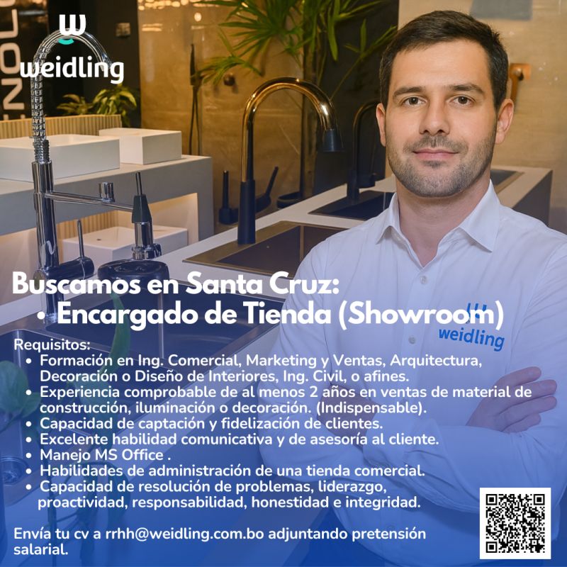 Envíanos tu CV actualizado al correo: rrhh@weidling.com.bo