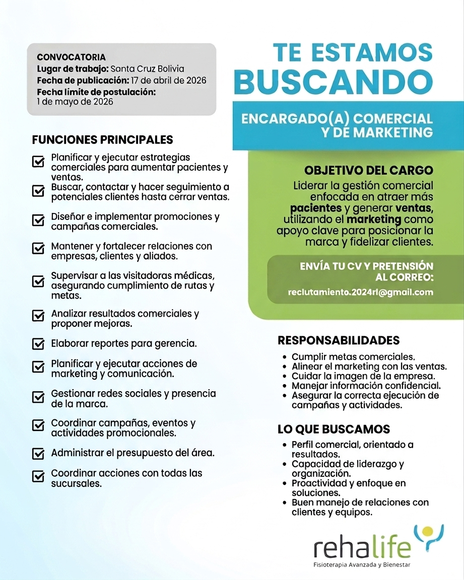 ENCARGADO(A) COMERCIAL Y DE MARKETING