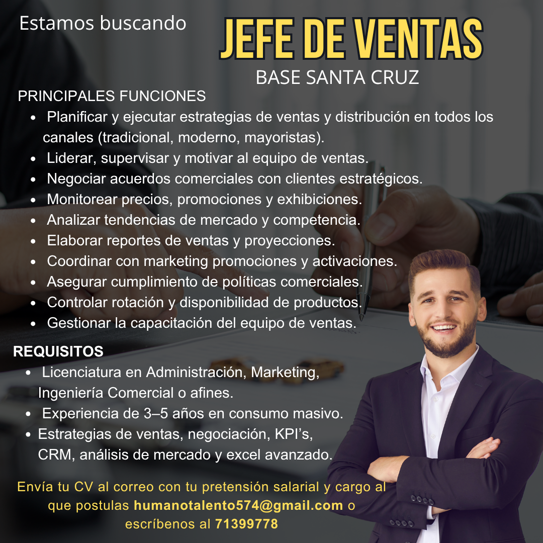 Puedes postular a este empleo con tu cuenta en Trabajando.com.bo ¡Postularme Ahora! Descripción del empleo Reportar este empleo