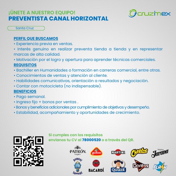 • Interés genuino en realizar preventa tienda a tienda y en representar marcas de alta calidad.