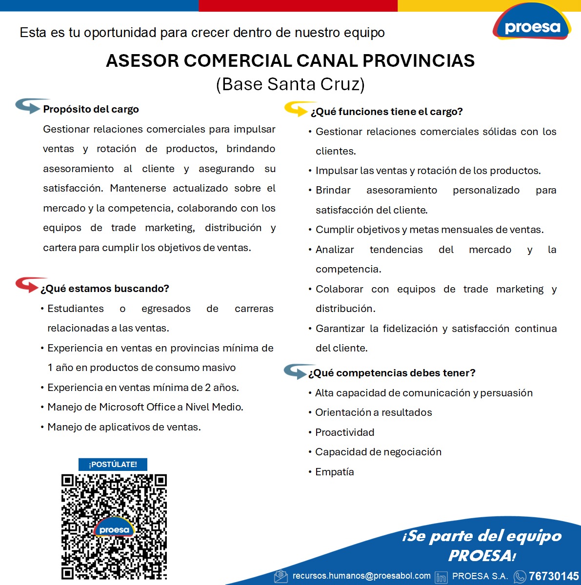Santa Cruz · Comercial y Ventas · Jornada completa VIGENTE