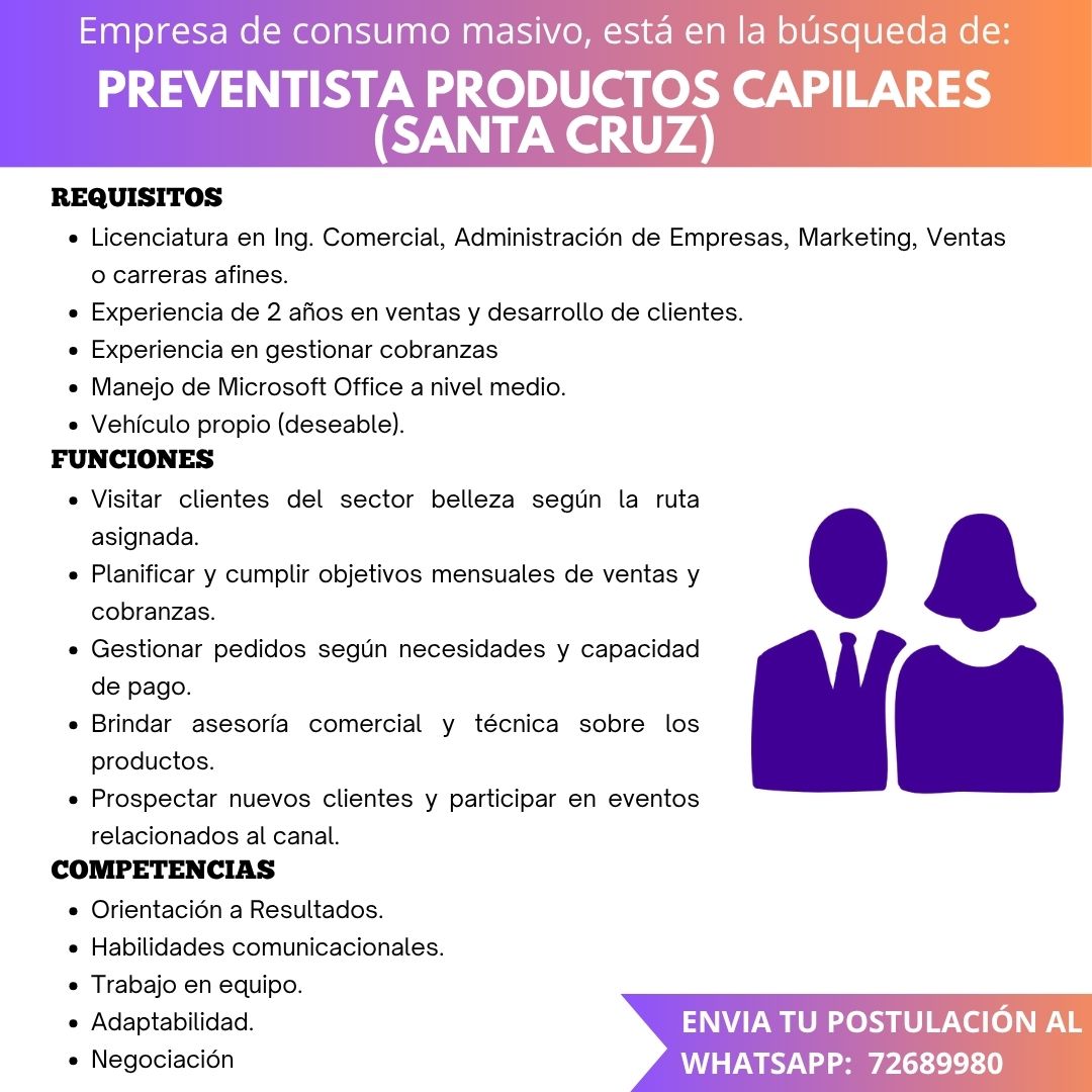 Santa Cruz · Comercial y Ventas · Jornada completa VIGENTE