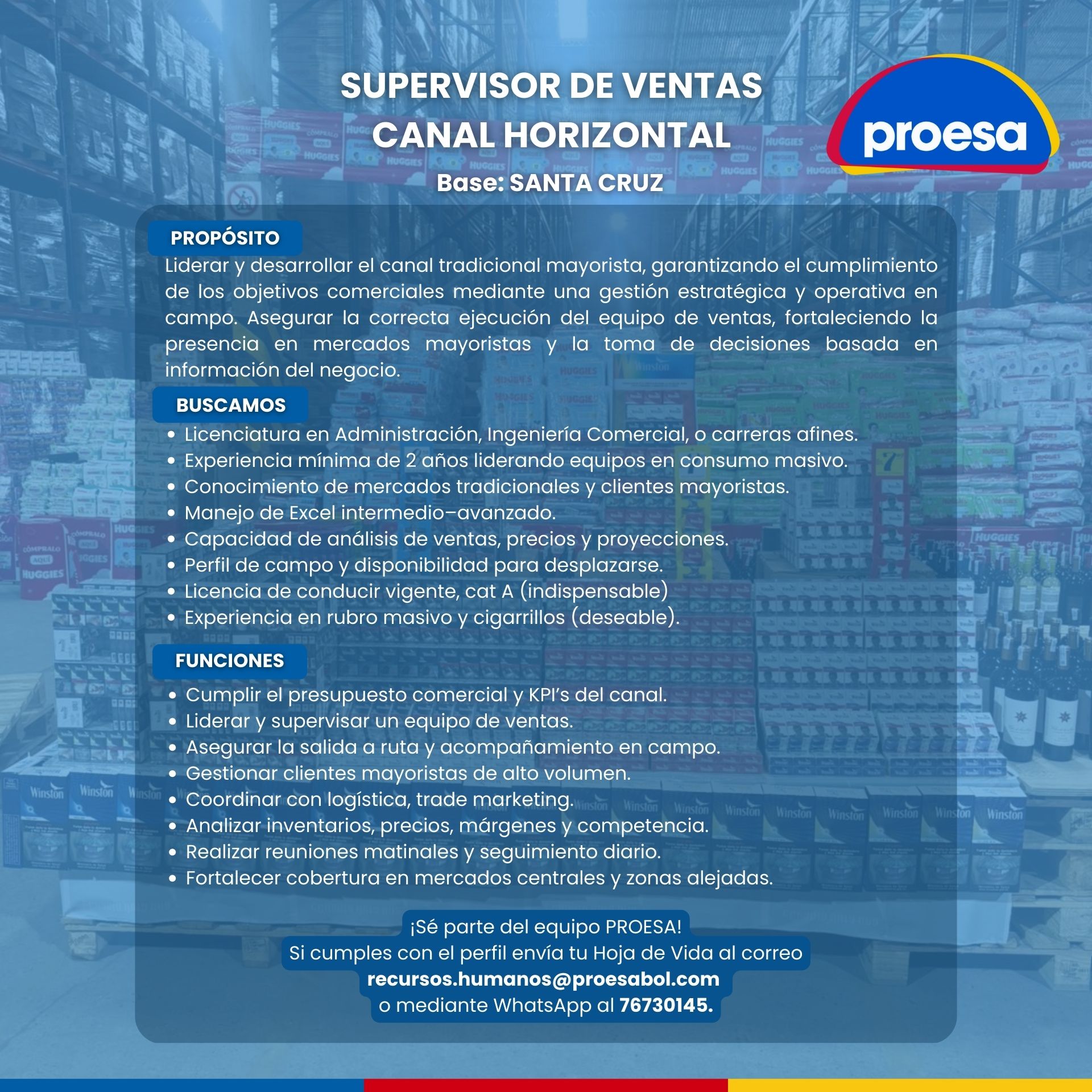 Santa Cruz · Comercial y Ventas · Jornada completa VIGENTE