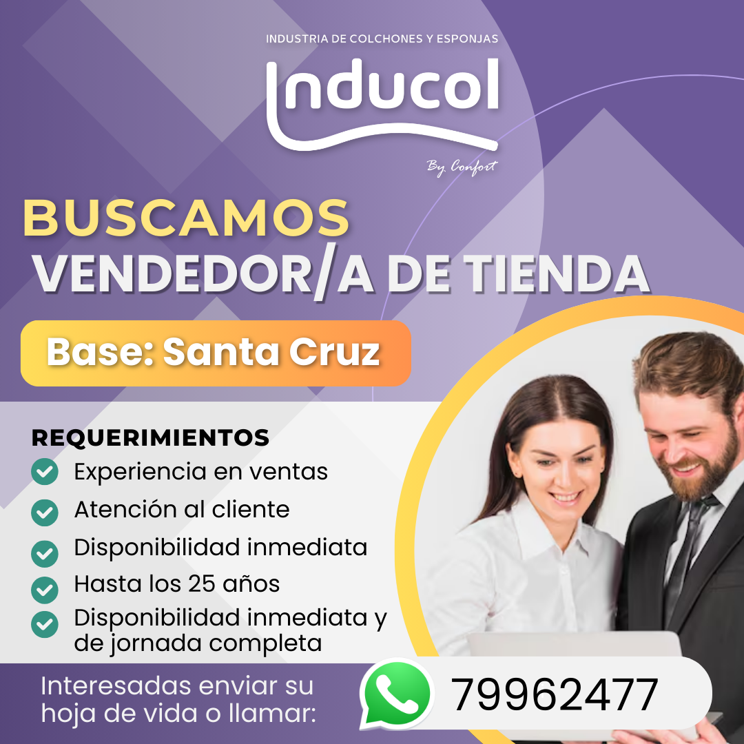 📣 ¡Inducol está contratando en Santa Cruz!